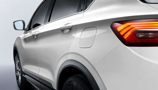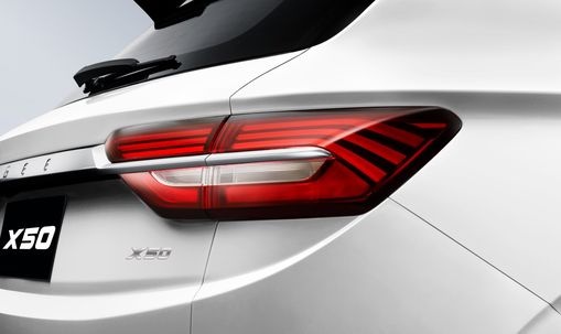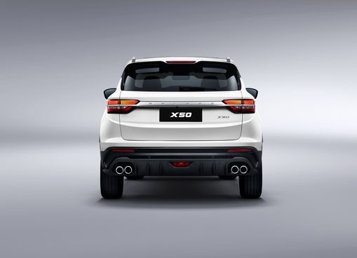 Кроссовер выглядит свежо и динамично за счет выверенных пропорций кузова и стремительных линий выштамповки. Его спортивный характер подчеркивают резко очерченные фары с выразительным светодиодным рисунком и сдвоенные патрубки выхлопной трубы. Центром притяжения передней части стала решетка радиатора с многоцветными концентрическими элементами, обрамляющими логотип. В максимальной комплектации X50 обращает на себя внимание красными тормозными суппортами.