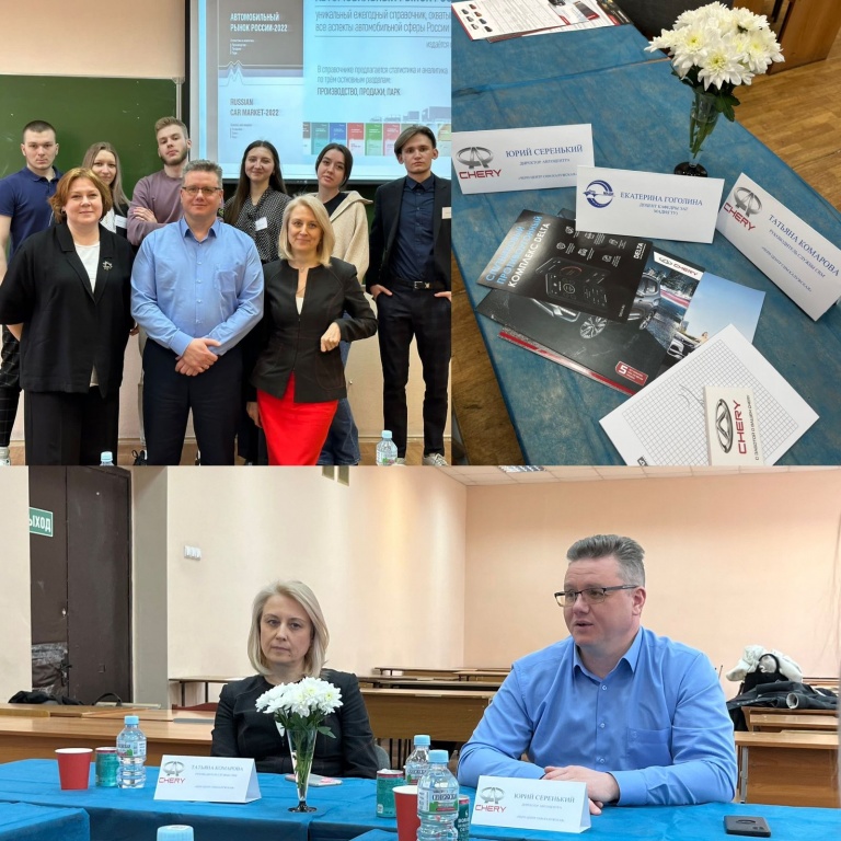 Вчера в университете в рамках дисциплины "Организация производства на предприятии" прошел круглый стол "Экономические проблемы авто-бизнеса в условиях современной реальности", участие в котором принимали и представители ГК "СИМ", директор автоцентра ЧЕРИ ЦЕНТР СИМ КАЛУЖСКАЯ Ю. М. Серенький и руководитель CRM службы этого подразделения Т. Ю. Комарова.