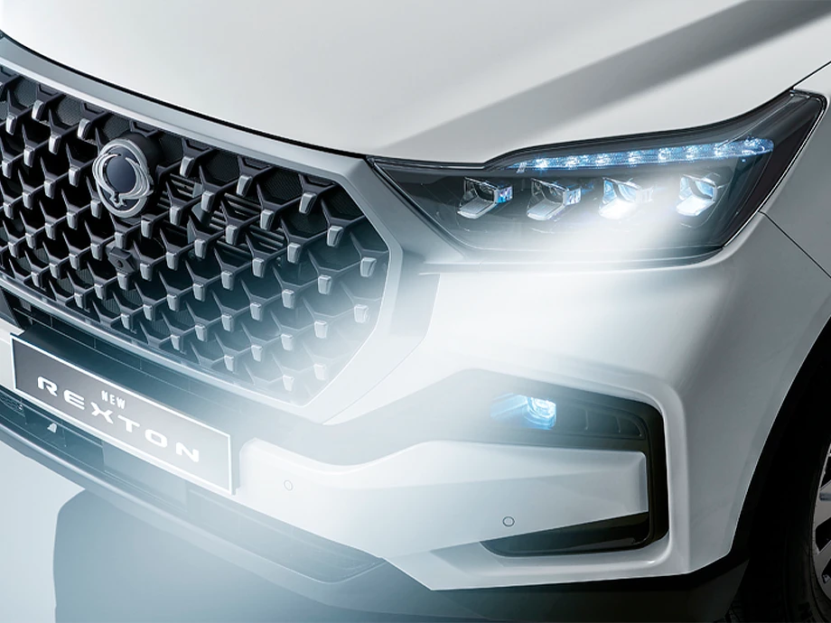 Не заметить новый Rexton невозможно благодаря его выразительным чертам. Полированные 20-дюймовые легкосплавные диски добавляют образу динамичности и солидности. Решетка радиатора с сетчатым узором и светодиодные фары с кристально прозрачными рассеивателями подчеркивают премиальный статус внедорожника. Задние фонари, светодиодные стоп-сигналы и динамические указатели поворота не только обеспечивают безопасность, но и производят сильный визуальный эффект. Хромированные сенсорные дверные ручки с подсветкой добавляют удобства, а рейлинги на крыше расширяют возможности для перевозки багажа.